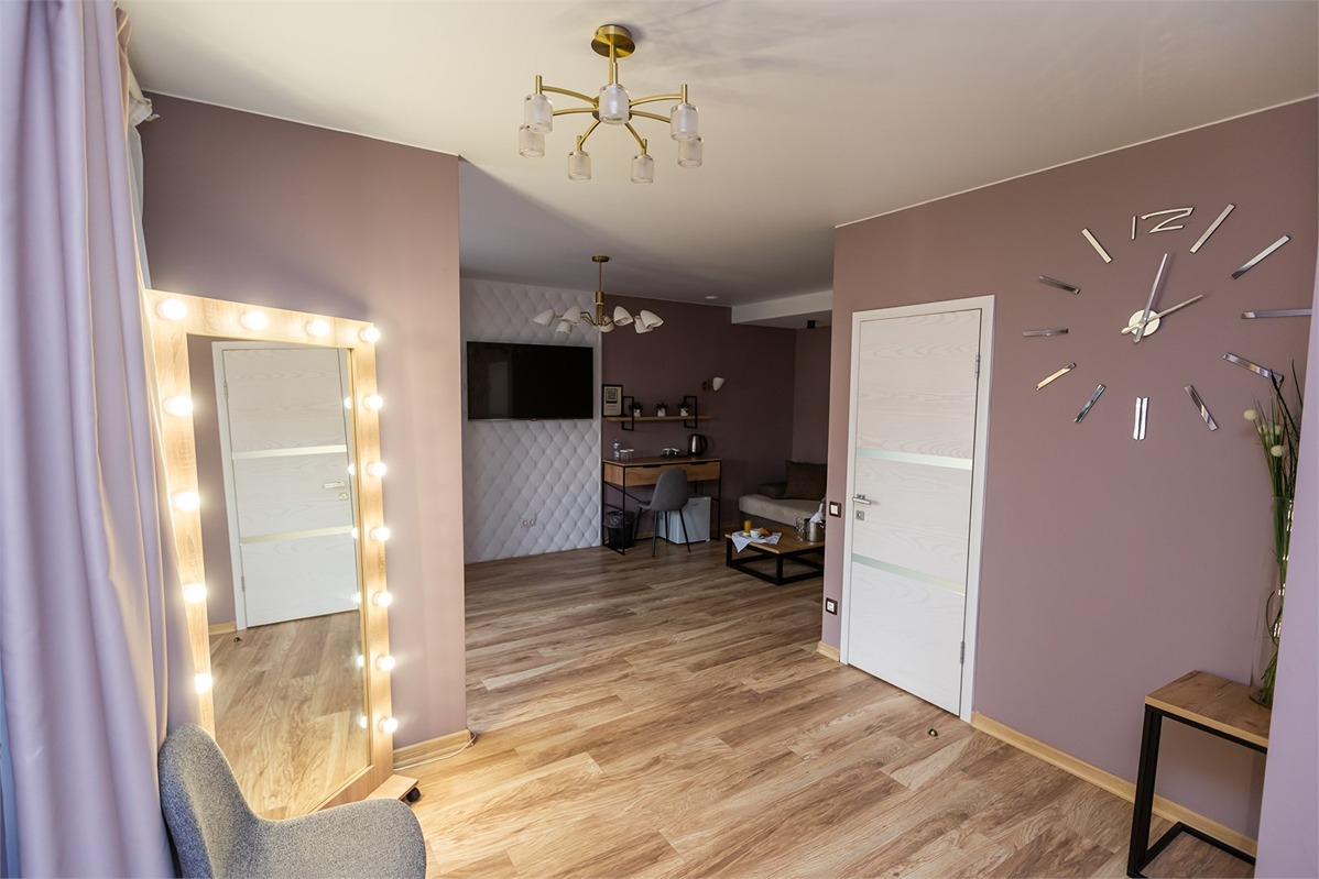 | Люкс 2-местный Представительский | 55 кв.м. | 3 чел. | Мебель (диван раскладной, кровать двуспальная, стол, стул, шкаф), Оборудование (мини-холодильник, те... | |