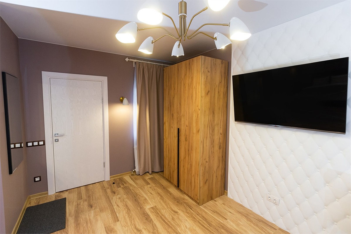 - Мебель: кровать двуспальная, стол, стул, шкаф