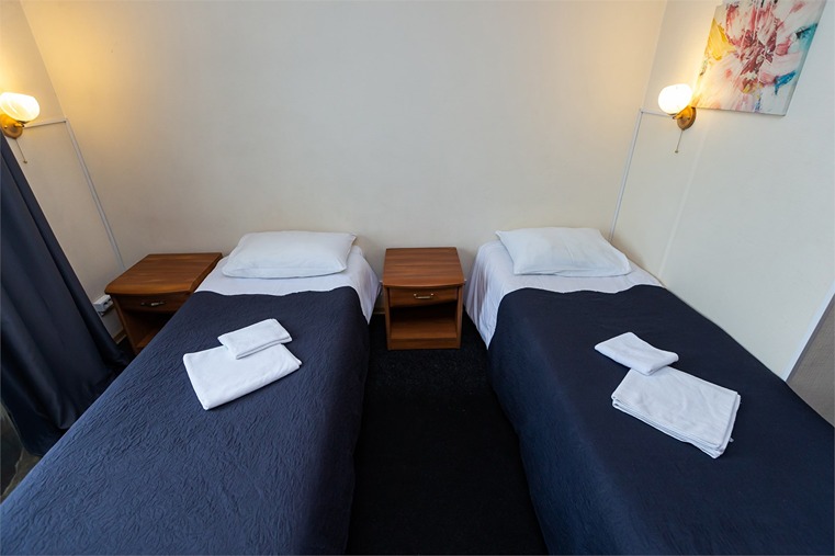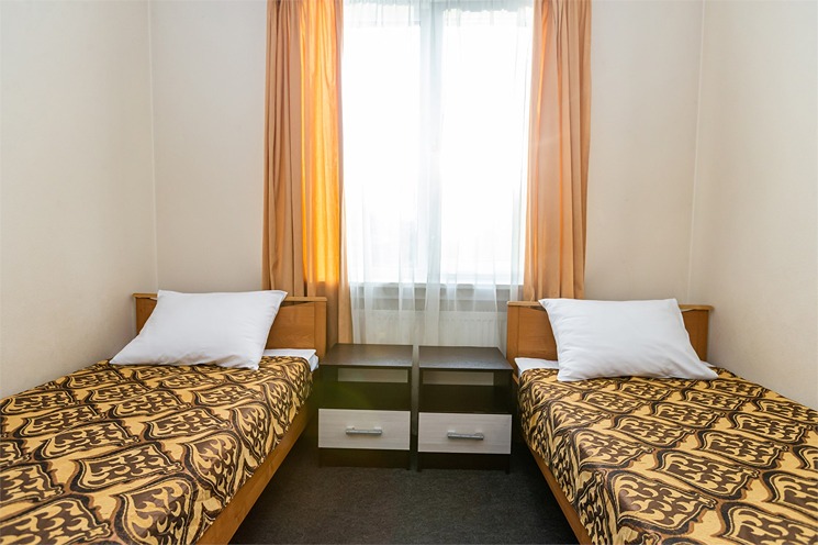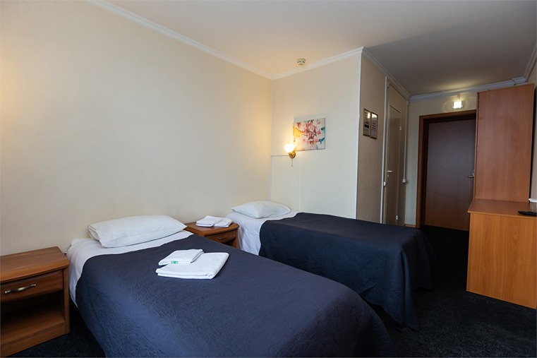 | Стандарт 2-местный TWIN | 12 кв.м. | 2 чел. | Мебель (кровати односпальные, стол, стул, шкаф), Оборудование (телевизор, телефон), Санузел (с душем... | |